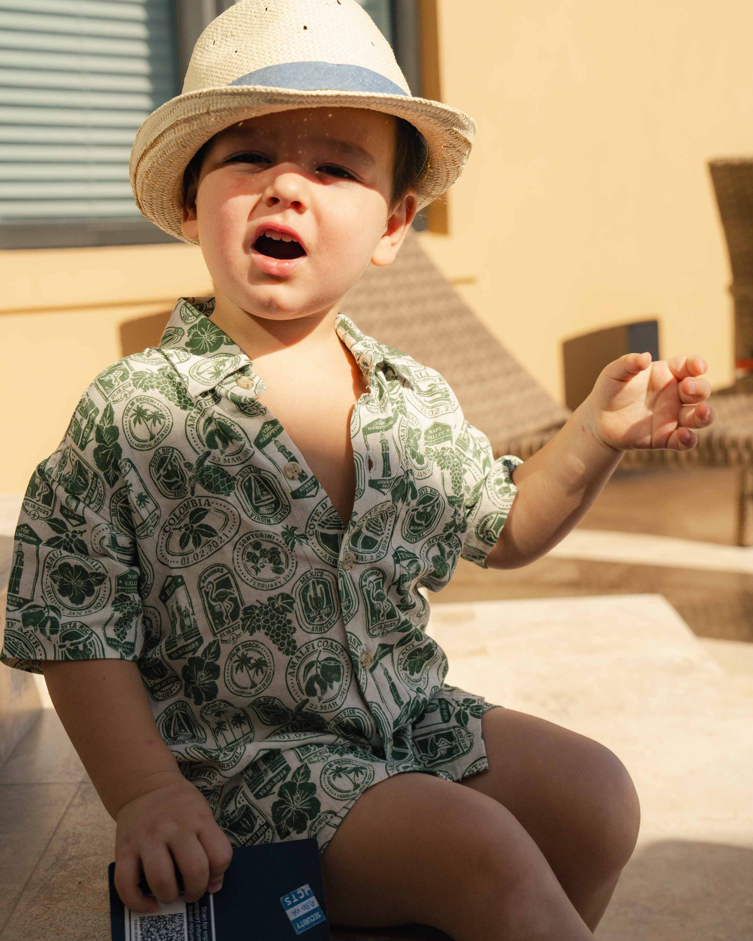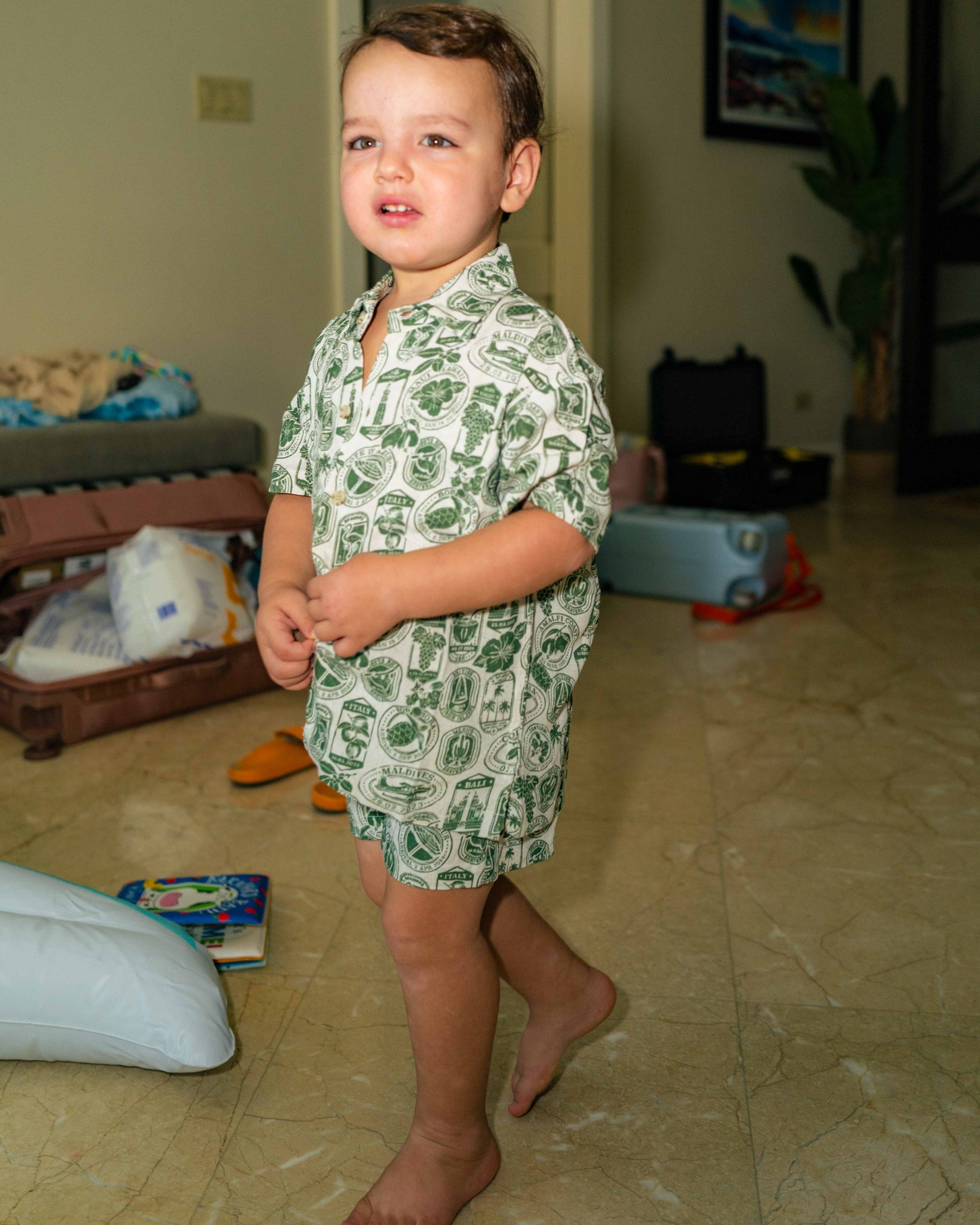 Boys Linen Passport Stamp Hawaiian Short